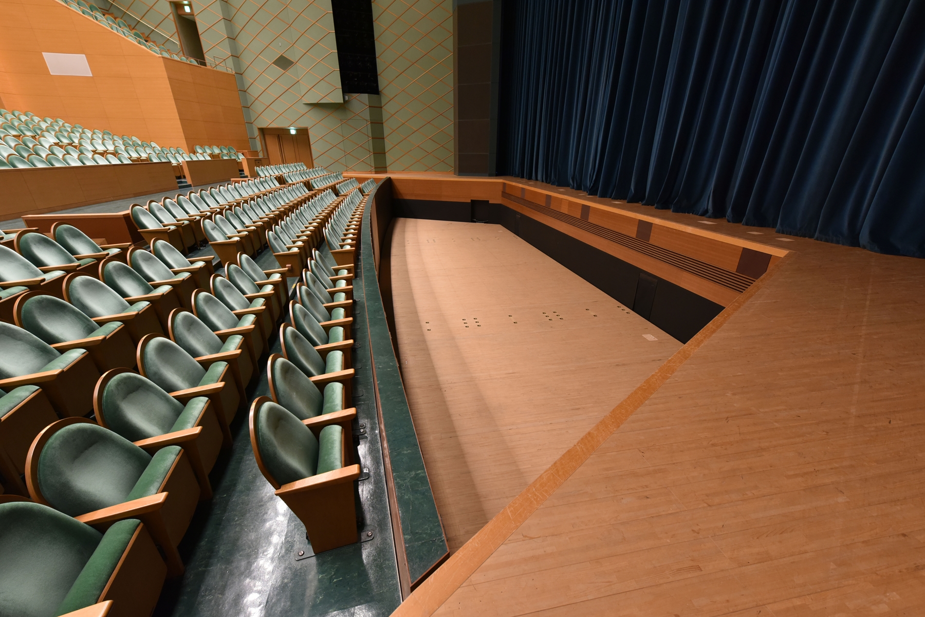 1.操作制御システムの全面的な改修、2.レベル設定機能の追加に伴うレベル検出器の新設、3.諸幕の更新、4.昇降機器に関する消耗品の交換、5.引割り緞帳およびバック幕装置の改修など、多岐にわたるリニューアルを実施しました。