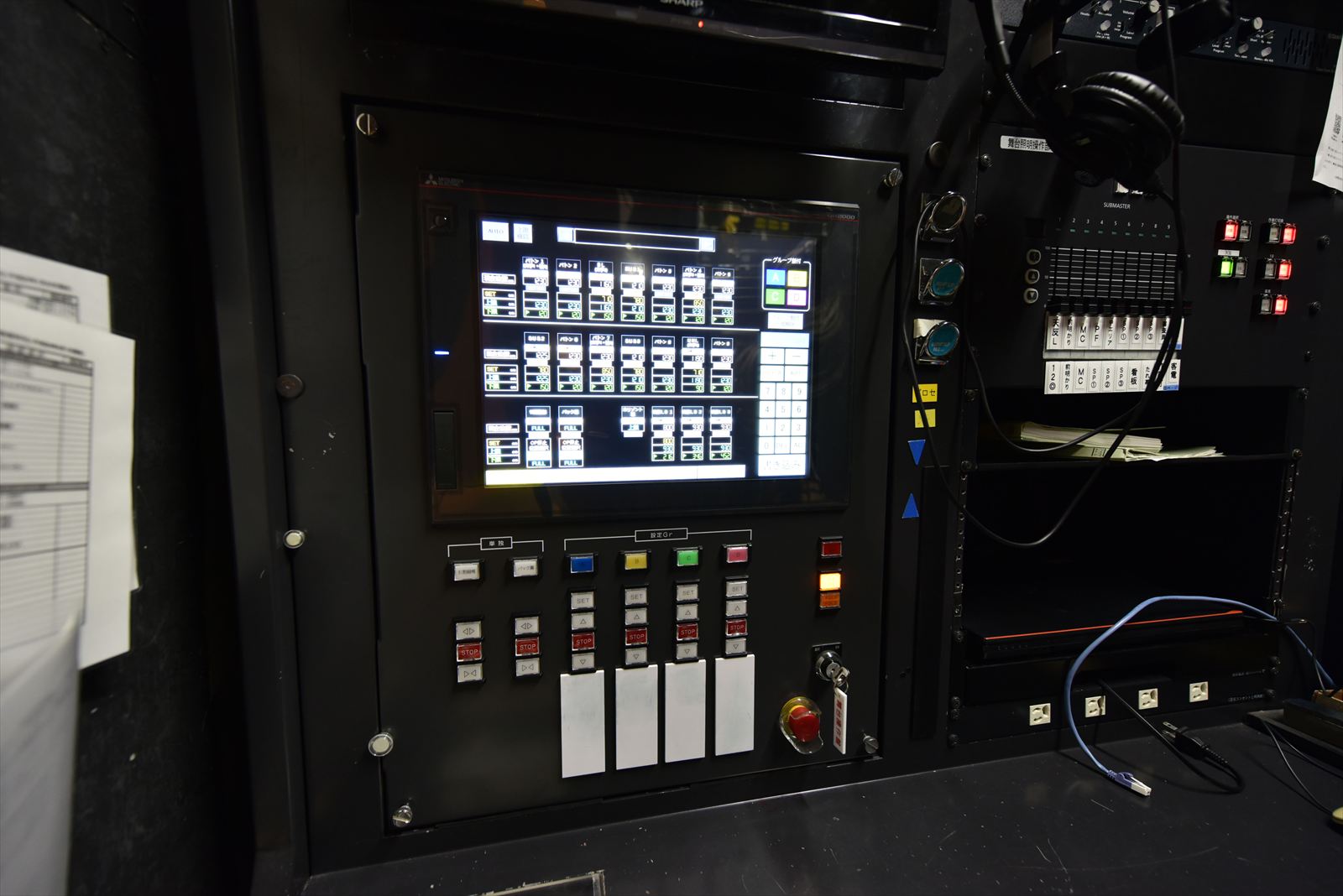 操作システムについては、従来の操作場所をそのまま活かしつつ、現代の舞台運用に求められる安全性と操作性の向上を図りました。特に、利用者から要望の多かったレベル設定機能を新たに搭載し、昇降位置の管理をより精密かつ容易に行える構成としました。また、当社の操作システムについても、既設操作盤をベースとしたレイアウトを採用することで、リニューアル後のオペレーションの違和感解消にも寄与しました。